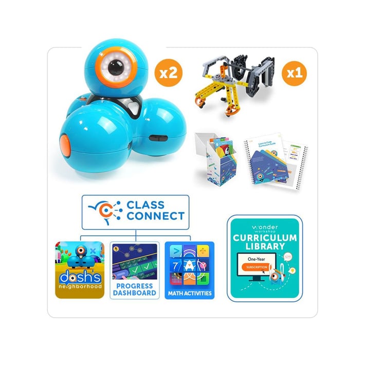 Пакетът включва лиценз за 1 учител и до 35 ученика с програмата Class Connect, която позволява следене на напредъка на всеки ученик, както и достъп до 3-D средата за програмиране на виртуален Dash - Dash's Neighborhood.
