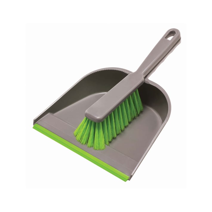 • Комплект, изработен от издръжлива пластмаса. Със специален механизъм, чрез който четката се прикрепва към лопатката за лесно съхранение на комплекта.