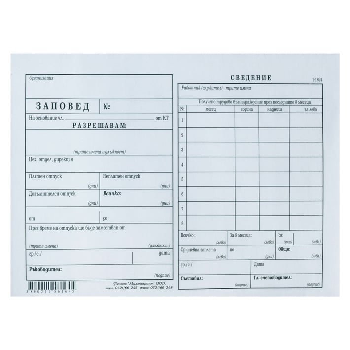 Заповед за отпуск, химизирана, 100 листа
