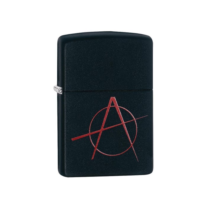 Символът „Анархия“ е цветно изобразен върху черна матова запалка Zippo, създавайки силно визуално присъствие и изразителен характер. Контрастът между матовото покритие и яркия дизайн придава отличителна визия, подходяща за хора с индивидуален стил и свободен дух.