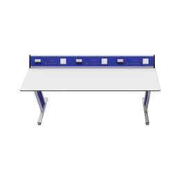 Ученическа маса RFG Flat, лабораторна, над VII клас, 180 х 60 х 75 cm, HPL плот, метални крака, синьо-бяла