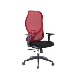 Ергономичен стол RFG STAR HB, дамаска и меш, Synchronous механизъм, до 150 kg, черна седалка, червена облегалка