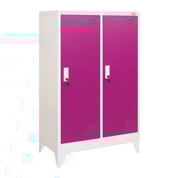 Гардероб RFG, метален, двоен, с две врати, 80 х 40 х 120 cm, бял, с лилави врати