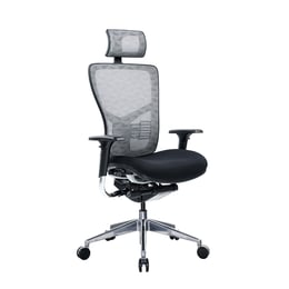 Ергономичен стол RFG Snow Black HB, дамаска и меш, Multi-function механизъм, до 120 kg, светлосива седалка, светлосива облегалка
