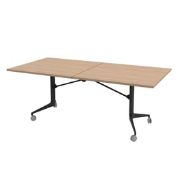 Конферентна маса RFG Butterfly, мобилна, сгъваема, 200 x 100 x 74 cm, правоъгълен плот, ПДЧ 18 mm, кехлибарен дъб, черни метални крака