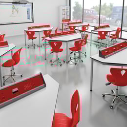 Кабинет по физика RFG Quin, над VII клас, за 24 ученика, HPL плот, метални крака, бяло-червен