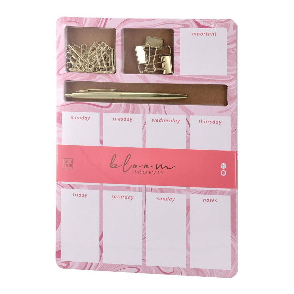 Планер Biro Time Opal, седмичен, с канцеларски материали, 48 листа, розов