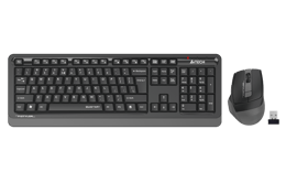 Комплект A4Tech - клавиатура и мишка Fstyler FGS1035Q, 2.4 GHz, Nano USB, 6 бутона на мишката, AAA, сиви